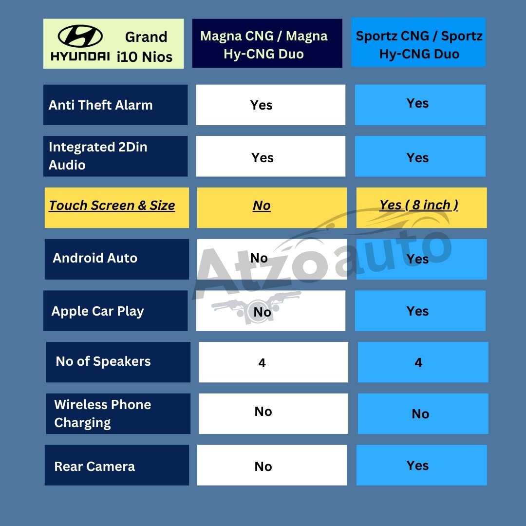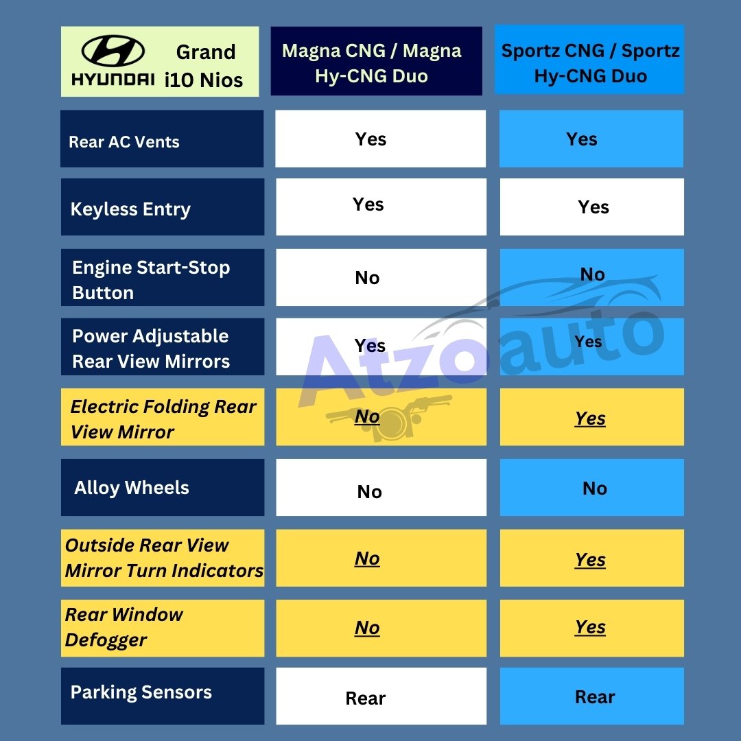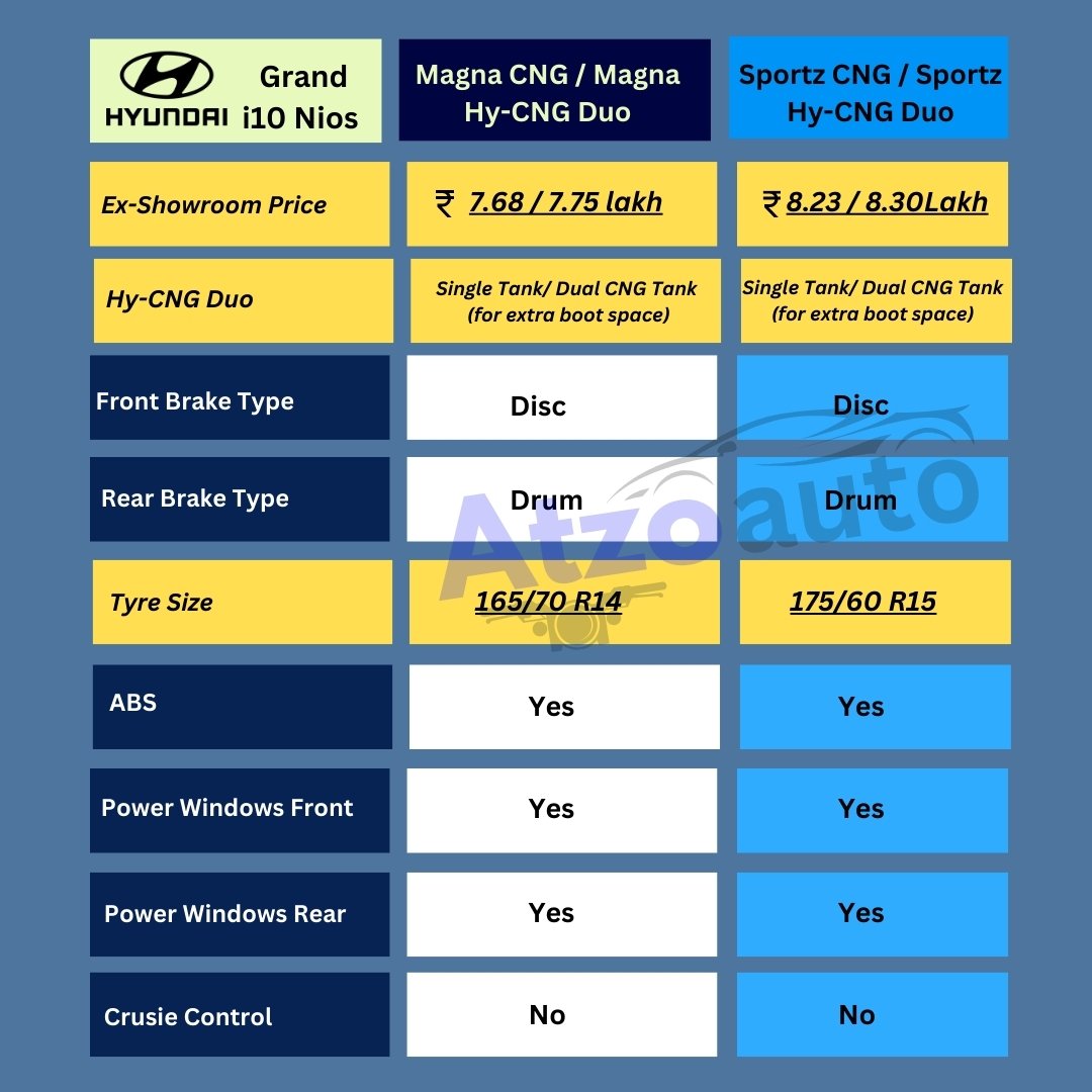Hyundai - Grand i10 Nios - Magna CNG, Magna Hy-CNG Duo, Sportz CNG, Sportz Hy-CNG Duo