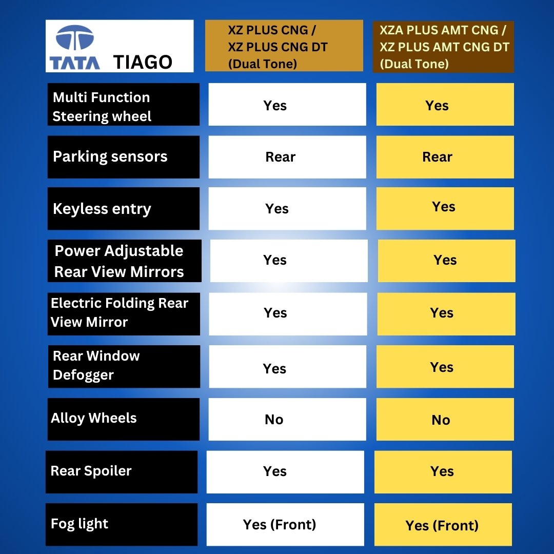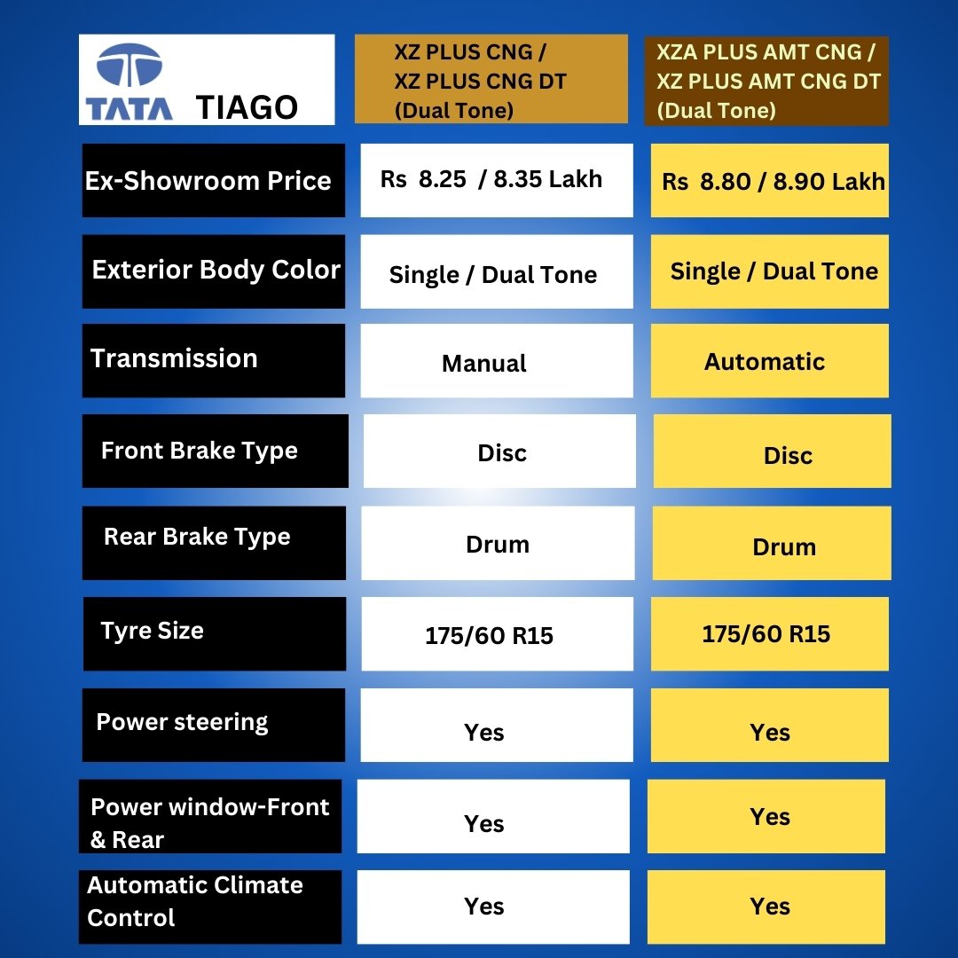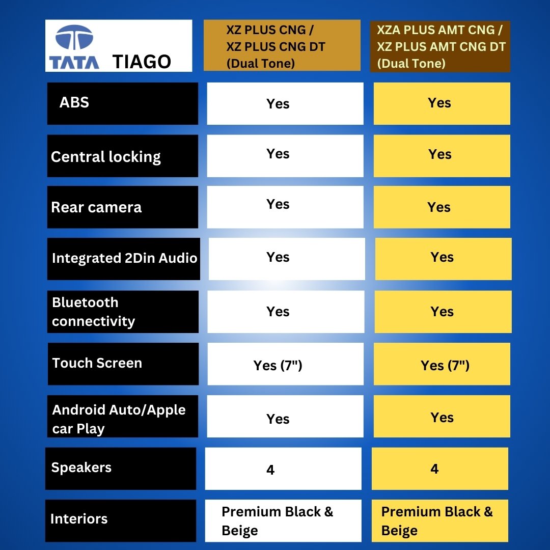 Tata Tiago - XZ Plus CNG, XZ Plus CNG DT, XZA Plus AMT CNG, XZA Plus AMT CNG DT